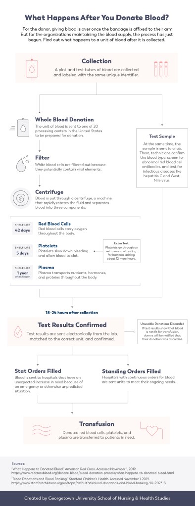 According to The American Society of Hematology, blood banking is “the process of collecting, separating, and storing blood.” It also includes typing and testing blood. Every hospital has a blood bank where it stores blood, but not every hospital has the infrastructure to also collect donations.
